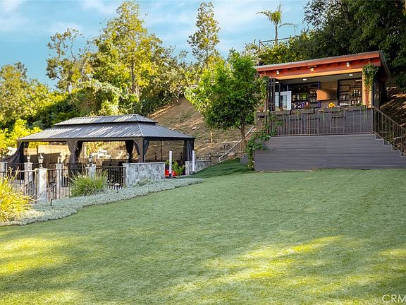 A newly completed bar area awaits your finishing touches, boasting a custom $12,000 bi-fold window that perfectly frames the stunning views. The newly installed sprinkler system services the hillside and pool area, making this home a luxurious retreat. Bar area also includes quartz countertops, electric stove top, refrigerator, tv, sink and much more!