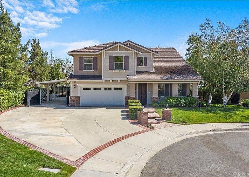 Stunning 5+4+3+Loft, Bed & Bath Downstairs, VIEWS for Days on a Cul De Sac, Huge Gated & Covered Side Yard, Entertainers Yard Overlooking the Entire Valley, No Mello-Roos, and Low HOA. Step into a Huge "formal living room" which is perfect for a pool table, while the traditional dining room is currently being used as a family room and has a custom built-in entertainment center. Gorgeous center island cook's kitchen with eat-in breakfast nook, pendant lighting, and tons of storage and counter space. Off of the kitchen is the large family room which is being used as the formal dining with a slider leading to the amazing yard and a beautiful stone fireplace w/ mantel! Just off the family room is the downstairs bedroom with a built-in murphy bed and a full bath. Head upstairs to find a light and bright loft, the huge primary suite which features a custom balcony with those amazing VIEWS, dual sinks with vanity area, huge walk-in closet with organizers, glass-enclosed walk-in shower, and separate soaking tub. Upstairs also features large-sized additional bedrooms. One of the rooms has a custom built-in bookcase w/ window bench and its own bathroom which is not common to this model home, a well-equipped laundry, and a recently updated bathroom. Good 3 Car tandem garage with epoxy floors and built-in cabinets. Expanded concrete driveway, huge gated and covered side yard with a concrete slab which is the perfect spot to park all your prized possessions. Enjoy the views of Santa Clarita in your lovely backyard which highlights a patio/deck, shade bars, turf lawn, spiral stairs, spa with custom patio cover, and built-in BBQ with bar seating. Don't miss the opportunity to make this your Next Home!!!