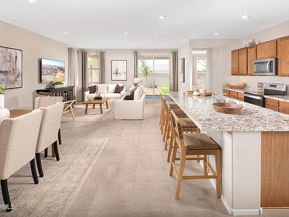 Welcome to this stunning Shiloh model located in the heart of Maricopa. This amazing model home has 4 bedrooms and 2 bathrooms, offering ample space for comfortable living. The 1930 sq ft home includes a roomy great room, a modern kitchen with a large granite island great for entertaining, and cozy dining room. The primary suite is spacious while the additional bedrooms provide plenty of room for family or guest. Step outside to enjoy the large patio on 7287 sq ft lot, perfect for entertaining and relaxing. Additional highlights include 9' ceilings with 8' interior doors, stainless steel refrigerator, white washer and dryer, and side exit door and so much more. This home will be ready to close in 30 days!