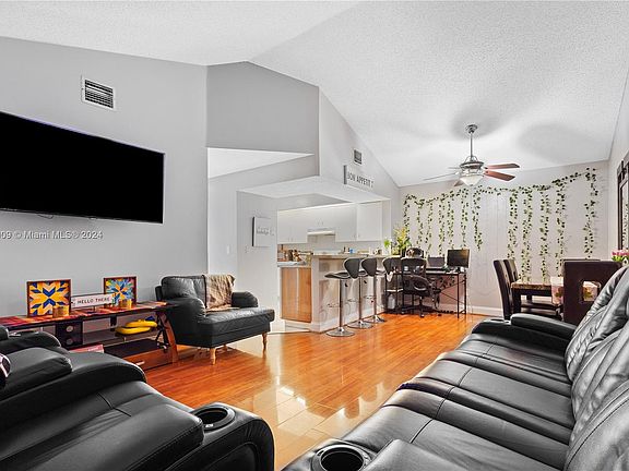 Beautifully gated condo, bathed in natural light and featuring 2 en-suite bedrooms with 2 bathrooms. Highlights include a natural and relaxing view, spacious walk-in closet, a dedicated laundry area with washer and dryer, a private balcony, and assigned parking in the sought-after Villa Rustica, a gated community welcoming all ages. The unit boasts a spacious kitchen, laminate wood flooring. The community offers exceptional amenities such as a tennis court, pool, jacuzzi, fitness center and kids' playground. Residents can register up to two vehicles, with ample guest parking available. Conveniently located near shops, restaurants, and major highways (826 and I-75), this condo provides the perfect balance of comfort and accessibility.