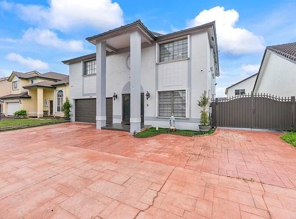 Motivated seller! Spacious 5BR/3 full BA home with 2-car garage plus 5-car driveway. Backyard oasis features a pergola, synthetic grass, board wall with generator cover, and a semi-ground pool to cool off, secured by fencing on cement base. Home upgrades include new metal roof with solar panels, impact front door, accordion shutters, LED lighting, and exterior security cameras. Remodeled kitchen with stainless steel appliances, 3 full modern bathrooms, tile flooring on first floor, laminate upstairs, organized garage with side closets, and independent laundry room with cabinets. Community offers tennis courts, pool, and playground. A true move-in ready home blending comfort, style, and modern upgrades. Attached you will find the estoppel, questionnaire, and seller disclosure forms. For community rules and regulations, please contact the listing agent directly.