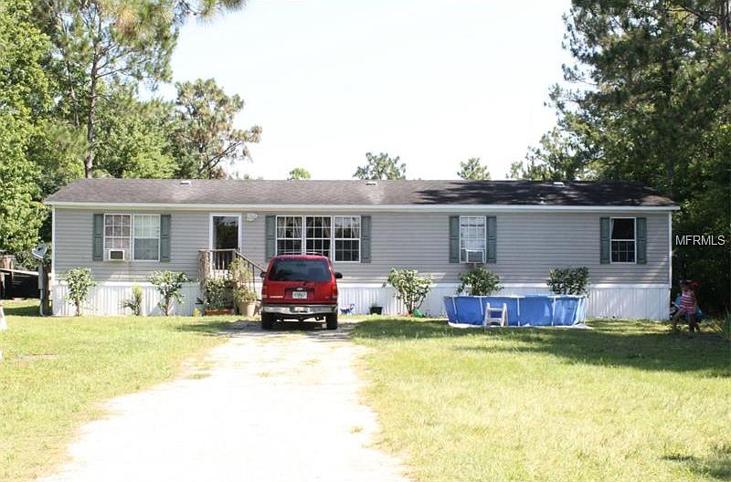 Great Deal! Escape from the urban sprawl of East Orlando to your own 1.19 acre sanctuary. This unique four bedroom two bath open floor plan home was manufactured in 2006. It sits back off of the main road and will excite your decorating senses. The master bedroom has a garden tub with a separate shower and a walk in closet! Enjoy the view of your property from the sliding glass doors in the back or from one of the many windows that let in plenty of natural light. The HVAC system is cleverly designed to circulate air from the ceiling vents down and not from the floor, allowing for better air flow. It is also a single package unit allowing for extra interior space in the laundry room. In the kitchen you will find great cabinet space and an island with plenty of room to prepare meals and have great family gatherings. It is piped for a propane gas stove.