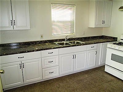 Beautiful 3 bedroom, 1 bath home Freshly painted and completely remodeled kitchen! Beautiful white cabinetry with dark granite counter-tops that compliment it very well! Stove included! Ceiling fans throughout the home! Washer and dryer hook ups out in the patio! Carport for parking! HUGE FENCED YARD YARD