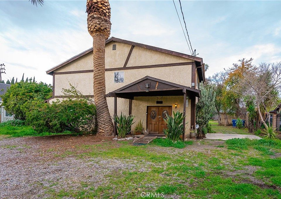 Great opportunity to transform this fixer into a dream home! Situated on a huge lot with an ADU that has a kitchenette, Laundry room, tankless water heater and a bathroom! Double door entry leads you into the formal living and formal dining room with a ceiling fan and slider to access the yard. Stainless steel appliances in the kitchen. Family room features another dining area and a fireplace. Upgraded downstairs bath with custom tile and large step in shower. Upstairs main/primary bedroom, with walk in closet offers a balcony overlooking the yard, a vaulted ceiling and ensuite bath. Secondary bedroom upstairs also offers a full private ensuite bath. Oversized backyard yard with citrus trees, passionfruit, and with plenty of room for your toys or to build additional structures! Bring your imagination and make this a treasure of a home into your private oasis.