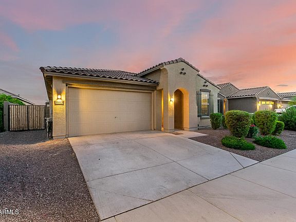 Home, sweet home! This 3-bedroom 2 bath awaits you in the sought-after Zanjero Trails, nestled in a quiet cul-de-sac. You'll be greeted with wood-look flooring, abundant natural light, & plantation shutters, all set in a comfortable open floor layout, perfect for relaxation and entertaining. The pristine kitchen features white shaker-style cabinets, under cabinet lighting, granite countertops, stainless steel appliances, a walk-in pantry, & an expansive island with a breakfast bar. The primary retreat boasts a walk-in closet and a full ensuite with double sinks for convenience. The nicely sized backyard is complete with a covered patio, a seating space with pavers perfect for weekend grills, and a grassy area. The 3 car garage has epoxy floors & an EV 240 electric charging outlet!