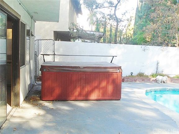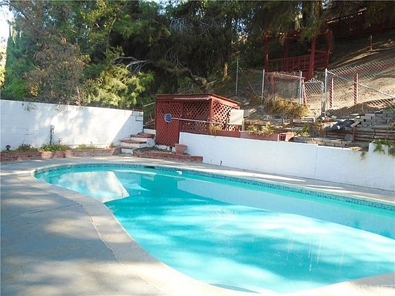 Well located close to freeways, shopping, etc. 2 story with 4 bedrooms up. Private pool and spa area. Located well above street on very private flag lot with view from upper deck. Redone kitchen and adjoining dining area overlook pool area. Cozy living room features fireplace and dramatic built-in bookcase. Newly carpeted. This home has lots of potential and charm.