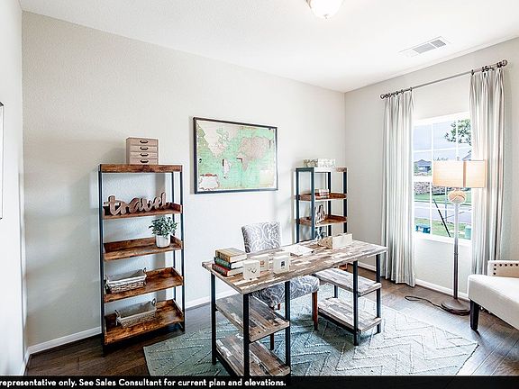 Every square foot is maximized with our Concho plan - the ideal home for the growing family.. This 4-bedroom home offers space, flexibility and comfort. Entering your new home, you are met with a foyer leading to your secluded study room. If you are looking for a little more living space, opt to transform the study room into your fifth bedroom! Travel further down the hall and you will discover the entry to your walk-in utility room, the convenient downstairs powder room, as well as the entry to your two-car garage. Need a little more room for your tools or holiday decorations? Decide to tack on an extra half-car garage. Past the utility room, and you are led to the heart of the home - the open-concept, two-story family room adjoined by the oversized kitchen and breakfast area. The kitchen accommodates sleek granite countertops, flat-panel birch cabinets (with the option to add more), as well as a kitchen island! One of the most exclusive options this floor plan offers is the ability to add in an extended covered patio off the kitchen area. Talk about the perfect outdoor sanctuary! Finally, the first floor holds your private master suite with an elegant master bathroom. The master bathroom holds cultured marble countertops with the option of dual vanities, a shower/bathtub enclosure, and an expansive walk-in closet! If you are interested in taking the bathroom space to the next level you have the option to turn your bathtub into a super shower, or opt for a luxury tub with sh