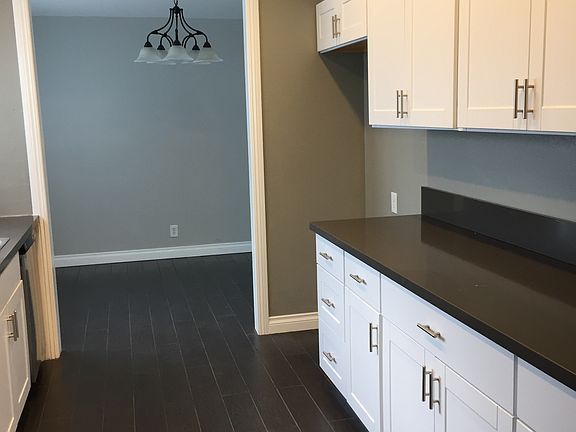 House just finished a complete remodel. New kitchen counters, stove & appliances, bathrooms, flooring, interior & exterior paint, recessed lighting in kitchen, etc. Central air conditioning and heating unit on roof. New vinyl fence on east side of property. This is a one story house and is located in a cul de sac in a quiet neighborhood near the local elementary and high school. Front of property features a large driveway that has RV access and a one-car enclosed garage. There is a large step down fifth room that would be ideal for office, media room, bonus 5th bedroom, etc. Backyard includes an in ground pool and several pomegranate trees. No window treatments throughout house. Sprinklers are non-operative. No lawn in front or back yard. House sold in as-is condition.