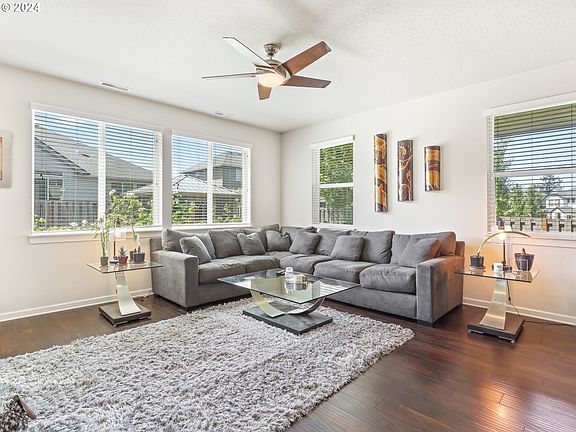 Welcome to your dream home in the sought after Lacamas Prairie Estates! This exquisite property features gorgeous flooring throughout, creating a seamless flow from room to room. The inviting living room has a cozy gas fireplace flanked by built-ins, perfect for both display and storage. The gourmet kitchen is equipped with granite countertops, beautiful cabinetry, an island with an eat bar, a walk-in pantry, and stainless steel appliances. Enjoy the convenience of a main-level bedroom and full bathroom, as well as a charming office adorned with French doors. Upstairs, the primary bedroom offers a serene retreat with a sitting room, walk-in closet, and a luxurious private bath featuring a giant walk-in shower and makeup vanity. Three additional bedrooms are also upstairs, including one with a Jack-and-Jill bathroom. The versatile loft space is ideal for a movie room or playroom, and the upstairs laundry room adds convenience.Step outside to a big fenced backyard with a covered patio. There's a fully permitted shed with insulation and electrical throughout and an incredibly gorgeous hot tub gazebo that has a permitted drain pipe that allows flow to the street. There are two Tesla charging stations in the garage and solar panels on the roof for energy saving! The home is adjacent to a common area with picnic tables and lots of space for gatherings. Enjoy proximity to great restaurants, shopping, and the Harmony Sports Complex.