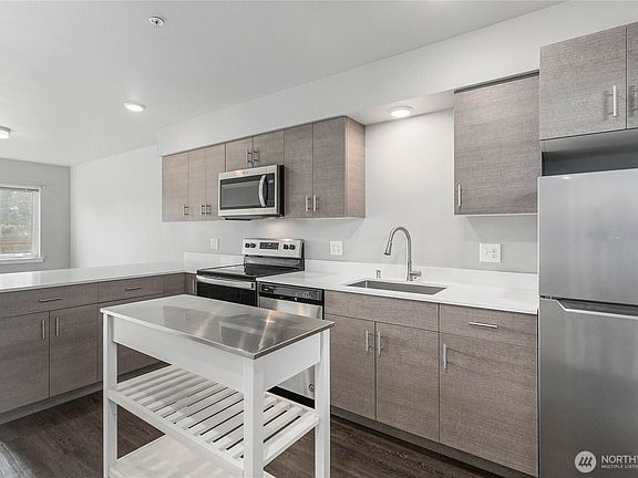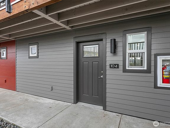 Immaculately cared for! Enjoy contemporary living in the heart of Lynden, where small-town charm meets modern convenience. This beautifully appointed ground-floor condo features a level patio overlooking Fishtrap Creek and lush green space, perfect for small pets and peaceful mornings. The open floor plan creates a bright, airy feel, complemented by stainless steel appliances, soft-close cabinets, quartz countertops, and durable vinyl plank flooring. The spacious bathroom includes a compact washer/dryer for added convenience. Low monthly dues and dedicated parking right in front make this an excellent home or investment property. Don't miss this rare opportunity in a prime location, just steps from coffee shops, parks, and local amenities!