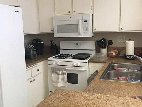 Upper unit with newly painted patio. Remolded in 2005, with upgrades to the bathroom, and kitchen in 2016. Two car parking under the tennis court. Common areas include several laundry facilities, tennis courts, gym, pool and spa. Great location, easy walk to restaurants, movie theater and shopping.
