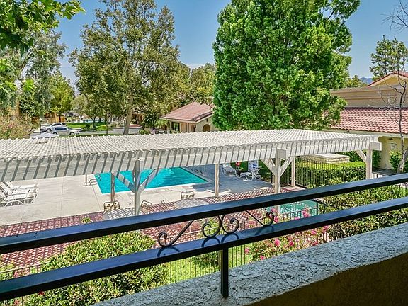 Desirable 1 Bedroom and 1 Bath Upper-End Unit in Best Location in the Confetti Tract Overlooking the Pool with Low HOA!!! This Condo Offers, Granite Counter Tops, New laminate wood floors throughout, an Open Kitchen, Stainless Steel Sink, Lots of Storage, Vaulted Ceilings, a Large Living Room with Lots of Natural Light, a Balcony that Overlooks the Pool, Spa, and Lots of Flowers, Dining Room, Tile in Bathroom and Kitchen, Bathroom with a Shower and Bath and Large Bedroom with Lots of Storage, 2 Closets with Mirrored Wardrobes, 2 Covered Parking Spots Under Tennis Courts, Quiet Complex Very Well Kept with Lots of HOA Amenities: Tennis Courts, Swimming Pool, Spa, Gym and Laundry Room and Security Patrol. HOA also covers water and trash. Located within Walking Distance to a Movie Theater, Shopping, and Restaurants. This Property is Move-in Ready and Not Going to Last!!
