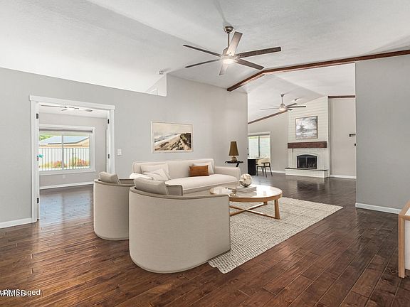 Perfectly situated on a spacious lot with a sparkling pool, this beautifully updated home offers the ideal blend of style, comfort and functionality. Over 1,900 sq.ft. of updated living space, this 3 bedroom, 2.5 bath residence also includes a flexible office/bonus room to suit your lifestyle. From the moment you enter the charming foyer, you're welcomed into a spacious living area with vaulted, beamed ceilings, a cozy fireplace and a custom-built bar complete with a wine fridge--perfect for entertaining. The chef-inspired kitchen is a true highlight, featuring Thomasville cabinetry, quartz countertops, farmhouse sink, newer stainless steel appliances, walk-in pantry and a large island that opens to the inviting dining area. A versatile bonus room just off the main living space adds even more flexibility for a home office, gym, or playroom. The luxurious primary suite is a private retreat unto itself with dual walk-in closets, double vanities, a walk-in shower and direct access to the expansive covered patio. Two additional bedrooms offer walk-in closets and share a full bath with a relaxing jetted tub/shower combo. Step outside and enjoy Arizona living at its best--complete with a fenced pool, two side yards, RV gate and a storage shed. Additional highlights include a newer variable-speed pool pump, Nest thermostat, Ring doorbell and driveway camera. With easy access to I-17 and Loop 101 and just minutes from shopping, dining, schools, parks and more this home truly has it all! Furnishings available on a separate bill of sale.