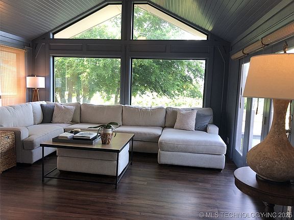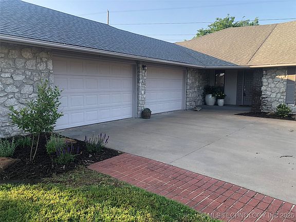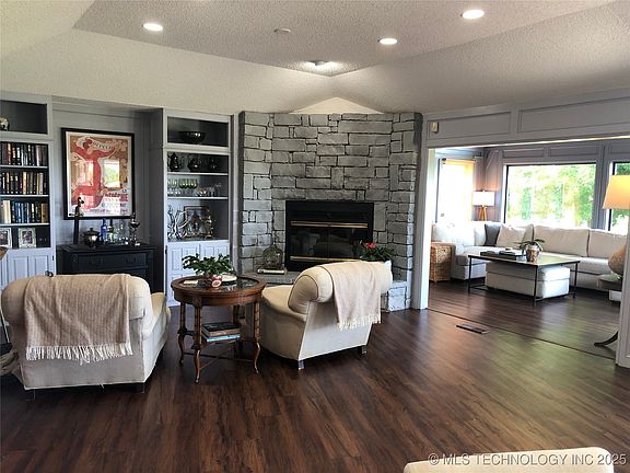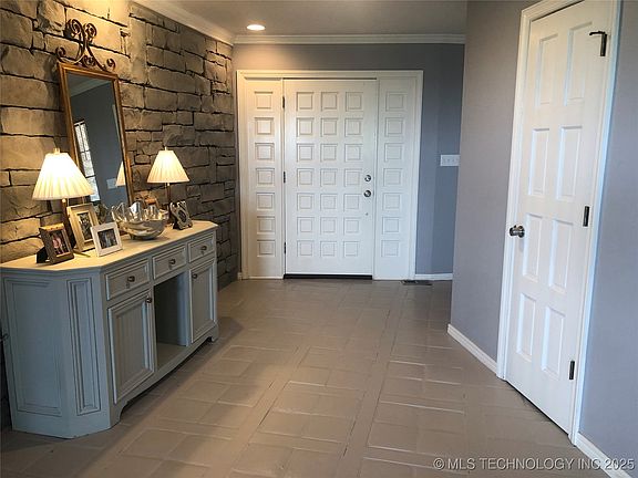 This beautiful home is located on a hilltop with gorgeous views that can be seen from the large Trex deck. Great floor plan with common areas in the center of the home. Large living room with corner fireplace, built-ins and soaring ceilings. Sun or bonus room that allows for great outside views and lots of sunlight. The enormous kitchen features granite countertops, an eat at island with a cooktop, stainless steel appliances, and includes the refrigerator. The floorplan has split bedrooms with the master suite opposite of the other two bedrooms. All bedrooms have large walk-in closets and new carpet. The master bath features a large tub, shower and double vanities. The additional bedrooms share a Jack and Jill bathroom with personal vanities. This home has tons of storage, a large pantry, walk-in linen closet and more. A four car, oversized garage with heat/air, insulated doors, and a large mechanics closet. Home is located in the desirable Woodcrest Estates and Catoosa School district.