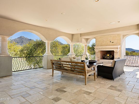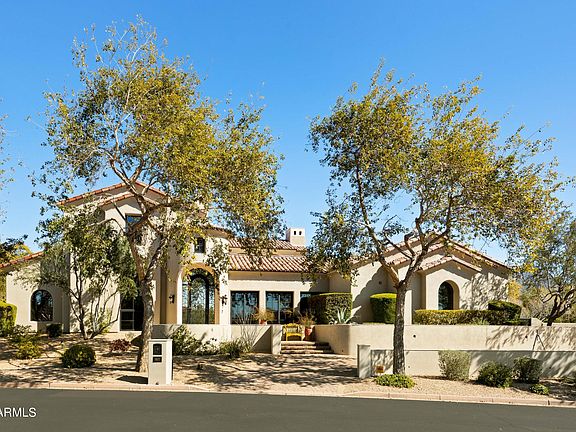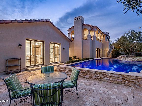 Seller Financing available upon seller approval. Authentic & charming, this 5845 sf modern Spanish Colonial custom estate with attached guest house is located on a premium corner with lush vegetation creating a sense of privacy & tranquility. An inviting entry leads to an elegant & timeless design including stone & wood flooring, wood beam ceilings, limestone fireplace surrounds & custom cabinetry. Exuding warmth, this sophisticated retreat is an entertainer's dream with gourmet kitchen in the heart of the home, surrounded by a game room, theater room & separate guest quarters. Multiple patios & balconies throughout the home extend the entertaining space with fireplaces, mountain & backyard views. The outdoor living space is a true oasis, offering the perfect place to relax, unwind & simply enjoy the beautiful Arizona weather. It features a large patio with covered seating for al fresco dining, a built-in barbeque, sparkling pool & spa. There is an abundant green space for kids or pets to play & is an ideal place for entertaining or intimate gatherings. The location of this home is one of its greatest assets. Located in a quiet residential neighborhood, close to Arcadia's signature grassy parks, yet walking distance to Gateway Hiking trail & DC Ranch Market Street shopping, dining & entertainment. This stunning home combines comfort, luxury & convenience with something to offer everyone. Come experience the magic of Silverleaf Arcadia for yourself!