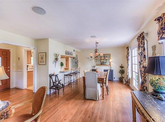 Classic ranch-inspired home rests in the heart of North Tustin and has been impeccably maintained and improved with a variety of upgrades. With a welcoming curbside approach and well-appointed interior consisting of four spacious bedrooms, three baths and 2,172 square feet, enjoy a comfortable floor plan with wood floors that flows with ease for everyday living and entertaining. The bright kitchen features modern improvements including beautiful granite counters, custom cabinets with eating bar and island, and opens to the dining and living room warmed by a wood-burning fireplace and surround sound system. Adding to the appeal of this home is the generous family room and bonus room, which could be a fourth bedroom if desired. The master bedroom is truly a quiet haven and offers a large walk-in closet, a delightful built-in window seat and private access to the charming backyard. French windows and doors surround the home and flood the main living areas with natural sunlight and capture views of the large grassy back yard, ideal for relaxed living, with brick paver patio seating areas, vibrant gardens and fruit-bearing trees. Abundant storage and award-winning schools awaits the most discerning buyer to call this home their own.