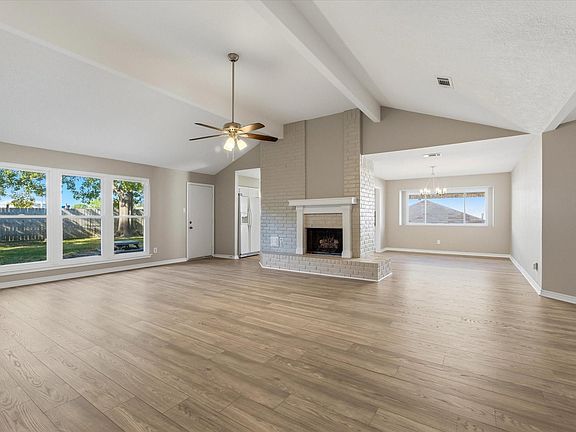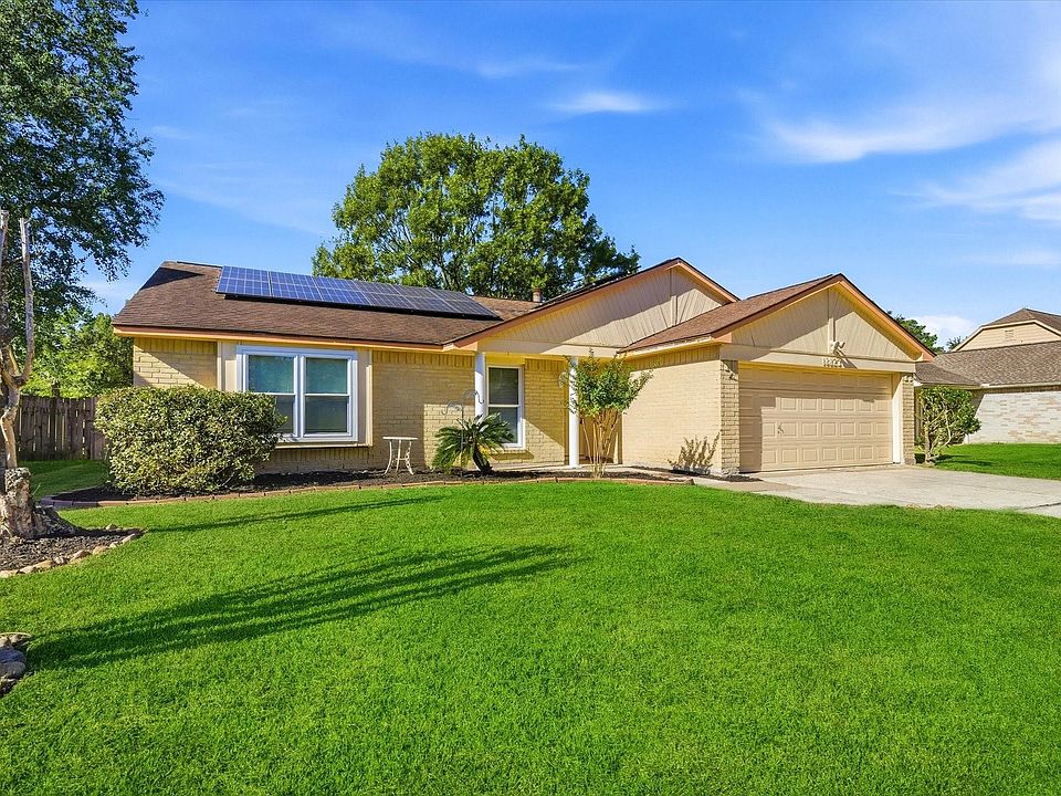 This home has so many wonderful things to offer! This home has been completely remodeled and has beautiful finishes and colors. The living room is huge and has a wood burning fireplace with a hearth that adds tons of seating to your living room. The primary bathroom has a great walk in shower and the closet is huge! The large kitchen looks out to the back yard. And speaking of the back yard, there's a fabulous patio area and the neighborhood park, pool, tennis court, sand volleyball court, basketball court, covered picnic tables and clubhouse are just on the other side of your fence! You could even add a gate to access it easily. This home has solar panels that you will own free and clear and thanks to those panels, there is typically NO light bill. This is a 5 minute walk to Timbers Elementary, a 10 minute walk to Atascocita Middle School and about a 20 minute walk to Atascocita High School. Add this one to your list to see!!