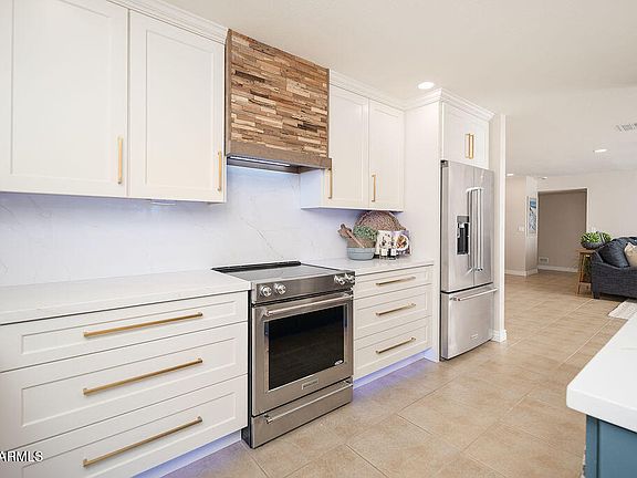 EXPERTLY RENOVATED MODERN SANCTUARY! This meticulously remodeled house offers an impressive array of upgrades and modern amenities. The complete kitchen remodel features a new layout with custom cabinets, sleek new countertops and high-end KitchenAid appliances. Thoughtful details include hidden outlets, under-cabinet lighting and a charming doggie diner with a water filler and quartz finish. The laundry room has also been reconfigured with new cabinetry. The primary suite showcases a tranquil retreat with tile flooring, a vanity with tile backsplash extending to the ceiling and a curbless entry shower. The guest bathroom has been refreshed with a tiled tub surround, a refaced vanity, and new fixtures. SEE ADDITIONAL REMARKS. More... Beyond the living spaces, the home offers a two-car garage with epoxy flooring, a utility sink and attached cabinetry. The landscaping has been transformed with an irrigation system, artificial turf and landscape lighting, creating a seamless indoor-outdoor flow.