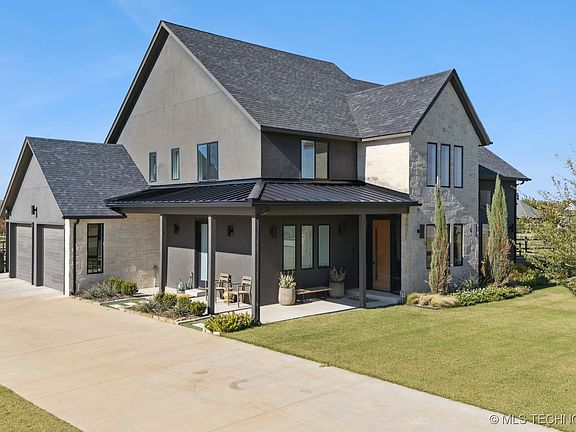 Located in the highly sought-after Stone Canyon community in Deer Run, this custom home blends modern design with thoughtful functionality. The open layout offers 4 bedrooms, 3 full baths, 1 half bath, and a dedicated study, ideal for anyone needing both space and flexibility. Quality is evident throughout, from the upgraded finishes to the energy-efficient construction. Pella 250 Series windows and full spray-foam insulation help keep the home comfortable year-round while adding to its overall appeal. The kitchen is a true standout, featuring custom cabinetry, Whirlpool appliances, and a smart pantry design with two access points, including a convenient entry from the hallway near the garage. The dining area is surrounded by windows, filling the space with natural light and creating a warm, welcoming atmosphere. Easy indoor/outdoor living is built right in, with patio access from both the living room and the primary suite. The back patio is oversized with 2 built in gas fire pits and plenty of covered space to enjoy the patio year round. The main level includes the primary suite and study for added privacy, while the second floor provides three additional bedrooms and a great loft space that can flex to your needs. A beautifully designed home in one of Owasso's premier neighborhoods. This is Stone Canyon living at its finest.