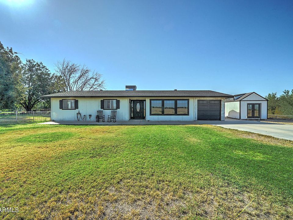 Book the movers! You've found your rural sanctuary with this amazing acre property. Mountain views and sunsets that'll take your breath away, this property is sure to please any homebuyer wanting the rural farm feel without being far from the convenience of city living. Located just on the border of Queen Creek and Gilbert. Spacious open floor plan, 3 bedrooms and 2 baths, fantastic bonus room off the kitchen, all tastefully designed with an urban farmhouse feel. Granite countertops in the kitchen, subway tiled backsplash, custom painted cabinets and stainless-steel appliances. Fenced property is located next to the Sonoqui Wash Trail which leads directly to the QC Equestrian Park, situated with N/S exposure and no neighbors to the north. NOTE: SHED IN PHOTOS BY HOUSE DOES NOT CONVEY