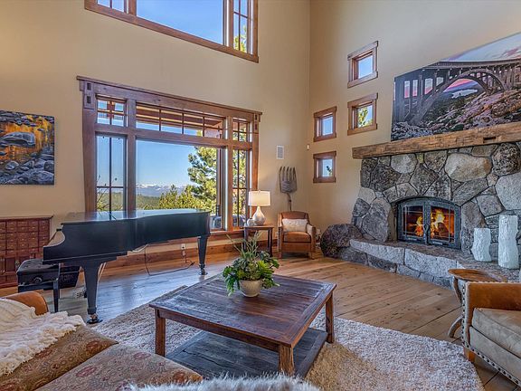 Beautiful, year ‘round scenery amidst 72.8 acres awakens your senses from this RARE property! Nestled in the prestigious Juniper Ranch gated community, enjoy magnificent topography, spectacular views of the Summit, Boca Reservoir, Tinkers Knob and miles of open space from this spectacular retreat! Beautiful summer landscape and winter snowcapped mountains will delight family and friends! Designed to maximize the Sierra views, traditional mountain architecture and exceptional craftsmanship blend perfectly with the landscape. And, with a solar system on the separate 1,618 s.f. garage roof, the property is nearly energy neutral. Stunning and every changing views welcome one and all in this remarkable retreat. The great room brings a stunning wood burning fireplace with granite river rock surround, soaring beamed ceilings and huge windows. Adjacent to the great room is a beautiful dining area, both with easy access to the covered porch, extensive view patio and outdoor spa. Whether this property becomes a full-time residence or vacation home, you will enjoy some of the finest views in the Truckee-Tahoe region throughout this thoughtfully designed 4,202 s.f. retreat perfect for entertaining, philanthropic events or simply relaxing. The easy flow kitchen is perfect for large and small gatherings. Leading appliances, large center island, extensive cabinetry and dining alcove brings special views to a canyon. A cozy family room integrates with the chef’s kitchen and provides access to the rear deck and patio areas. A spacious main level bedroom with wood planked floor, French doors, intimate deck and adjacent bath is perfect for guests or a home office. The large laundry room, expansive mudroom and unfinished 525 s.f. accessory dwelling unit (ADU) is accessed from the main living level. Upstairs, dramatic architecture compliments the picture perfect views. The lounge is a wonderful gathering area for the two bedrooms with walk-in closets and bath positioned in its own wing. The primary suite brings an intimate and private alcove; enjoy the gas stove, stunning en-suite bath and deep walk-in closet. An added plus – a 525 s.f. accessory dwelling unit (ADU) is nestled over the garage and while unfinished, is plumbed and ready for completion to the new owner’s specifications. The large garage offers extensive storage and easy access to the main living home and future ADU. This beautiful mountain retreat wouldn’t be complete without a WINE CELLAR! Nestled under the naturally landscaped mound in the center of the property’s roundabout, the cellar will hold 1,500 bottles of your favorite vintner and vintage! Naturally controlled by the elements, the wine cellar is a wonderful spot for intimate tastings and storage of your preferred collectables. As you enter the property, a sports enthusiast’s delight is the 1,618 s.f. standalone garage (with owned solar panels). This large structure offers extensive boat, car and equipment storage. Thoughtfully designed for a true mountain experience, here is the Juniper Ranch retreat and acreage retreat that will surely become a family legacy! Welcome to rare, beautiful surroundings and quality, custom construction throughout this magnificent property. Welcome home to Juniper Ranch and your slice of Truckee-Tahoe!