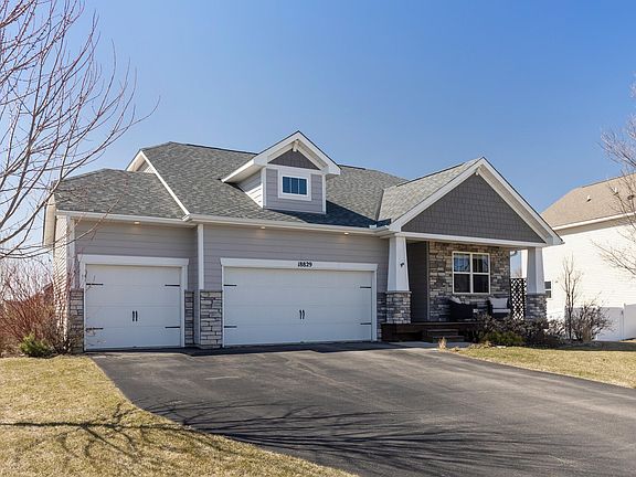 This move-in-ready, walkout rambler has everything you need and more! Perfectly positioned with wetland views and quick access to Highways 35 and 77. This home is close to gyms, restaurants, healthcare, downtown Lakeville and more. Designed with one-level living in mind, the main floor features three spacious bedrooms, including a luxurious primary suite. Freshly updated with new carpet, the suite offers a walk-in closet and a private bathroom complete with a walk-in shower, dual sinks, LVT flooring, and sleek quartz countertops. The kitchen boasts enameled cabinetry, stone countertops, stainless steel appliances including a dual oven gas range. Rich wood flooring flows seamlessly from the entryway through the kitchen and dining area, where a windows and sliding glass door to the deck flood the space with natural light. The mudroom is equipped with a washer/dryer, shelving, and ample storage. The lower level offers access to the backyard, a generous open family room with a game area, fourth bedroom, ¾ bathroom-perfect for visiting guests and an expansive storage area— great for hobbies, or future customization.With no HOA, serene views, and a like-new feel, this home delivers low-maintenance living without compromise.