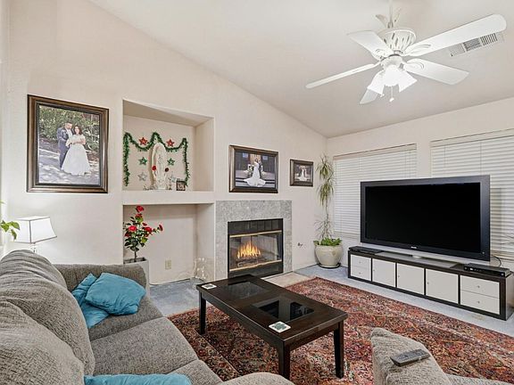 Discover this spacious 4-bedroom, 2-bath home designed for comfort and everyday living. Step into a bright living room with high ceilings and a cozy fireplace, ideal for family gatherings and relaxation. The main family room features a gas fireplace, a built-in entertainment center, and opens seamlessly to the large kitchen, creating the perfect hub for everyday living. The kitchen offers ample cabinetry, a center island with a breakfast bar, and a generous eating areaperfect for cooking, hosting, and family time. Enjoy a huge master bedroom with soaring ceilings and a sliding door to the backyard, offering a peaceful private retreat. Each bedroom is spacious and includes ceiling fans, adding comfort throughout the home. Step outside to a relaxing, private backyard with a covered patio, ideal for outdoor dining, weekend BBQs, or simply unwinding. Additional highlights include a convenient laundry room and a 3-car garage for extra storage and functionality.