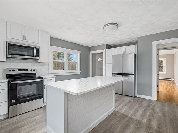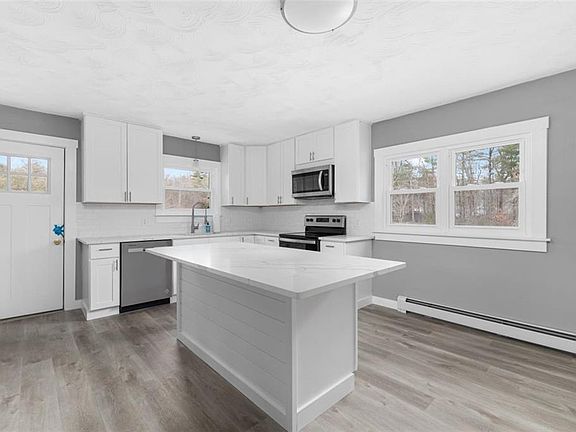 The possibilities are endless with this fully renovated 4 bed 2 bath cape minutes from Johnsons Pond all sitting on FOUR ACRES of land for you to experience and enjoy! This property sitting up off the road boasts its brand new vinyl siding, new roof and all new windows installed providing minimal exterior maintenance! The ample amount of parking available in the roundabout drive along with a detached 2 car garage will bring ease to those with large families, or for welcoming guests and hosting! You'll walk into a beautifully redone kitchen with a massive island and brand new stainless steel appliances! Freshly redone hardwoods throughout that pop with plenty of natural sunlight through those brand new windows and new recess lighting! The second floor provides you with 2 bedrooms and plenty of opportunity for other use in a warm, charming and modern combination! Both bathrooms fully updated with one including a laundry space on the lower level! Last but not least is the finished lower level with a full walkout entrance presenting you with plenty of space for additional use! This property also provides you with a brand new septic system and a brand new heating system so it runs and functions just as good as it looks! Do not hesitate to secure this opportunity as your own!!!