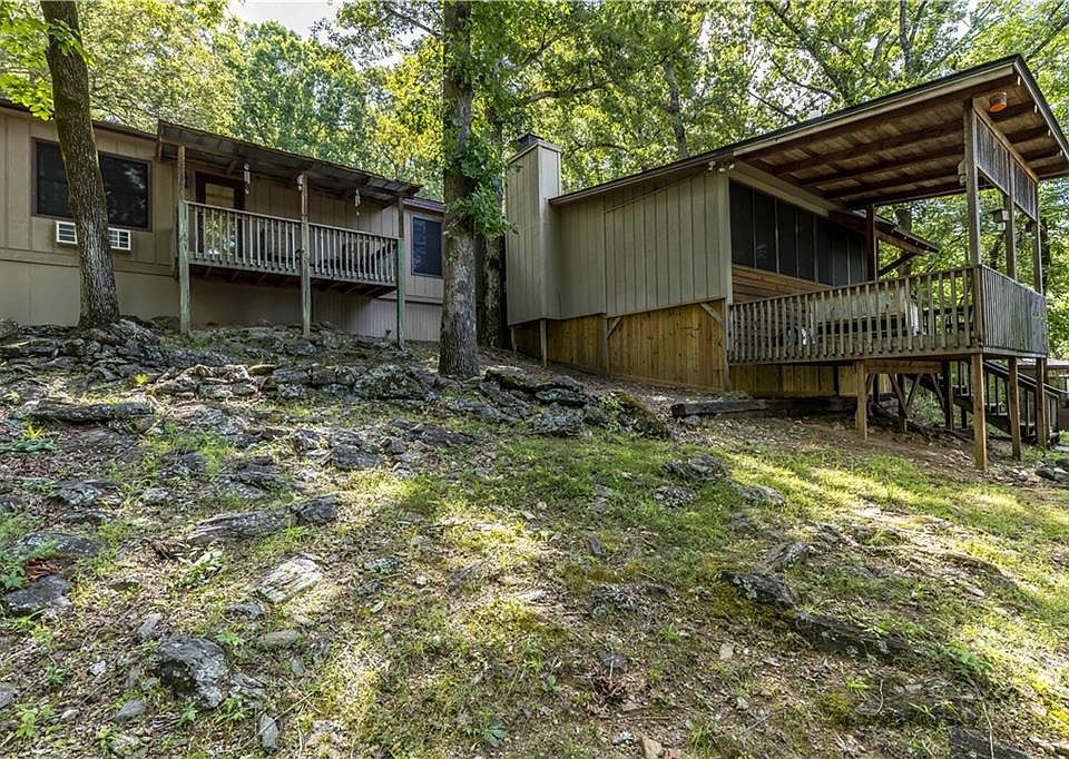 Welcome to Lake Harding! This once mobile-home has transformed into an expansive Cabin on the Lake! The C&G Leased Lot features nearly 2 acres of rolling hills with almost too many features to list! This remote, private property is perfect for a weekend getaway and has great access to all of Lake Harding! The lake home has had just one owner for nearly 40 years and it was a passion project, to say the least! It started with just simple, humble beginnings as a single-wide mobile-home but now encompasses so much more! The home has a den, living room, master suite with balcony, guest bedroom, an office, kitchen, one indoor full bath, one exterior access full bath, sun room overlooking the river, several decks, a patio, a grilling cabana, multiple carports, a two-car detached garage, RV/Camper covered parking, Boat covered parking, large concrete driveway, a walking path and driving path down to the lake, a dock on the water, a covered single boat slip, and a sun deck. This really is a must see in person! Reach out to schedule your showing today!
