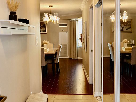 Luxurious Tridel Condo Corner Unit with Unobstructed Views. This beautifully upgraded corner unit offers plenty of natural light and an elegant modern design. Upgrades include new mirror sliding closet doors, stylish pot lights, a new sink and countertop, and newer stainless steel appliances in the kitchen, along with an in-suite washer and dryer. Enjoy world-class building amenities: fully equipped gym, indoor pool, rooftop terrace, party room, games room, and a well-managed gated community with 24/7 security guard for your peace of mind. Convenience at your doorstep: TTC bus stop right in front, and just minutes to the subway. Maintenance fees cover all utilities (water, heat, and hydro!).The unit comes with one underground owned parking spot and an ensuite locker for extra storage. Perfectly located within walking distance or a short drive to: Top-rated schools (Mary Ward Secondary School right across the street) Shopping centers, daily essentials, and big box stores, Parks, trails, golf course, and library, Restaurants, retail services, and a nearby hospital. This condo combines luxury, convenience, and security everything you need for comfortable city living.