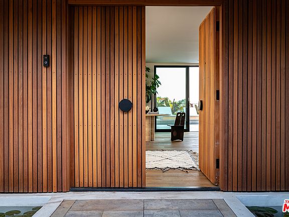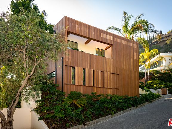 Perched high above the Sunset Strip, 1883 Rising Glen is a renovated Mid-Century Modern home with a Balua wood and crosscut travertine exterior. Expansive glass walls frame the cityscape beyond. The spacious living room shows off a skylight, a fireplace, and sliding glass doors that open to a pool deck with a barbecue and outdoor dining table. In the gourmet chef's kitchen, walnut and Greystone accents pair perfectly with state-of-the-art appliances and a large center island. The master suite comes with a large walk-in closet and spa-like bath, while the remaining bedrooms feature private baths and large closets. This is city living at its finest.
