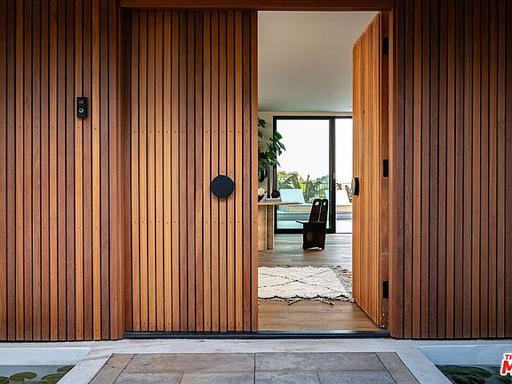 Perched high above the Sunset Strip, 1883 Rising Glen is a renovated Mid-Century Modern home with a Balau wood and crosscut travertine exterior. Expansive glass walls frame the cityscape beyond. The spacious living room shows off a skylight, a fireplace, and sliding glass doors that open to a pool deck with a barbecue and outdoor dining table. In the gourmet chef's kitchen, walnut and Greystone accents pair perfectly with state-of-the-art appliances and a large center island. The master suite comes with a large walk-in closet and spa-like bath, while the remaining bedrooms feature private baths and large closets. This is city living at its finest.