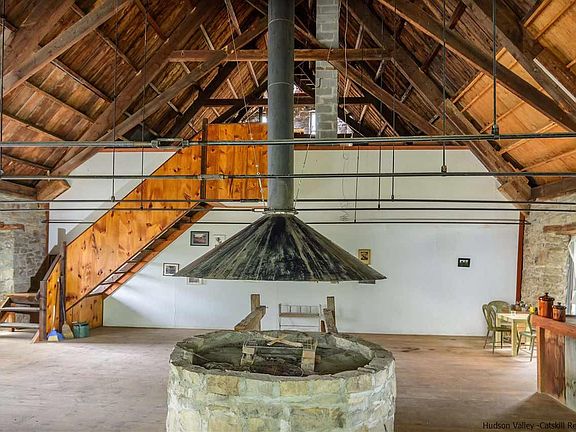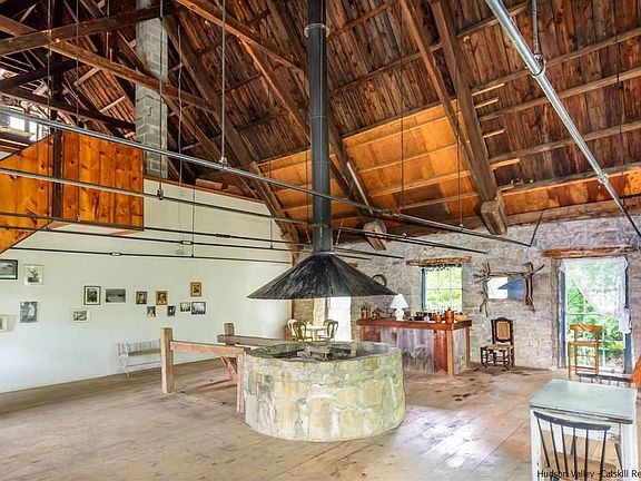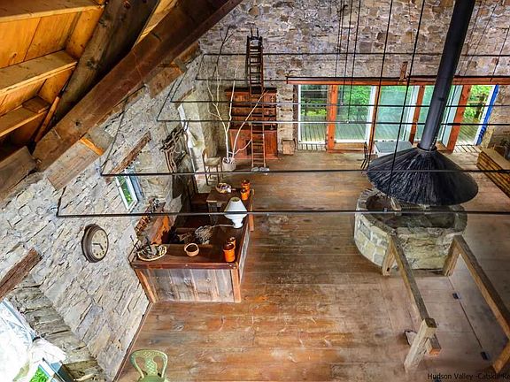 Is this a historic hand cut stone church, a dynamic nineteenth century industrial building, or an amazing multi-level artist's studio? It is everything you dream about and more. A living and working space like no other in the Hudson Valley. Ideally located between New Paltz and Kingston. This truly unique structure with 3 story tower is built into a stone ledge perched above the Wallkill River at the mouth of the Sturgeon Pool, incorporating lush gardens and water views, creates modern fairytale setting rich with old world charm. The living space has all the rustic elegance of a classic SoHo loft, 2,100 square feet, high ceilings, exposed beams, wide plank, 7' tall windows, and a hearth which breaths warmth into the open and flexible floor plan. The true value is in the work space! Divided into two exceptionally unique studio, complete with balconies, a loading dock, exquisite light and (quite literally) "cathedral ceilings", This is rare opportunity, the perfect place for painters or sculptors, musicians or theatre companies, or as a weekend get-away for those who love to entertain. Greatroom hosts a deck with river views, a bar and indoor grill- all the atmosphere to eat, drink & be merry.