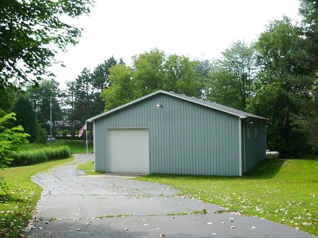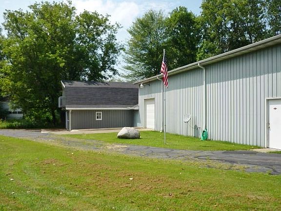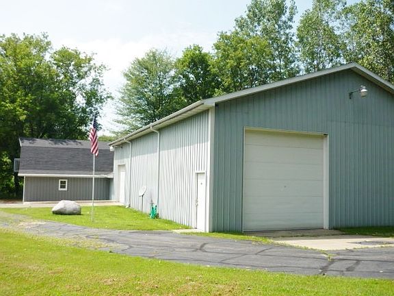 ULTIMATE MAN CAVE! WOW! Over 3,000 sq. ft. of space for your toys & fun. Power gate & doors for security, plus security system. Overhead door to accommodate a motor home. Car hoist in main building and air compressor. Furnace, full bath, laundry hook-up - all you need is a kitchen & call it home! Additional garage & side entry door to main building. Attached to a 2 story building with separate furnace & a/c up & down. Wood paneled living space upstairs with closets. Perfect get-a-way. Even has little balcony that overlooks the woods. New roof 3 yrs ago. Has well & septic system. All other contents are negotiable. Propane gas. Sits on 1 acre.