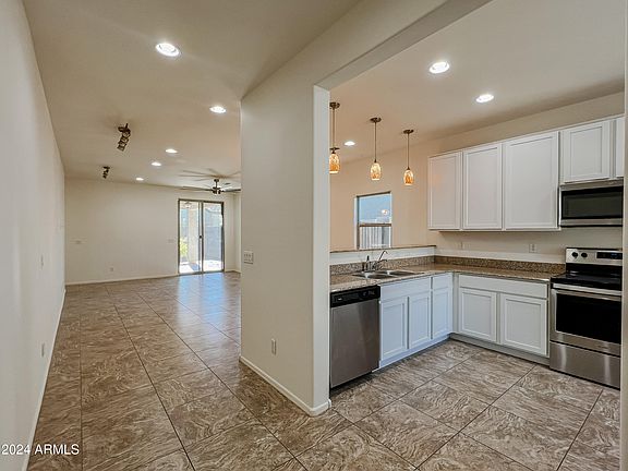 Nestled in the gated community of Stagecoach Trails, this home offers the perfect blend of comfort, style, and convenience. Enjoy access to a heated pool and clubhouse, plus stunning mountain views! Inside, the open floor plan is flooded with natural light, creating a bright and airy living space. Upgrades include granite countertops, stainless steel appliances, upgraded cabinets, and travertine flooring throughout. Additional perks: a filtered water system, water softener, and new ceiling fans. Step outside to a cozy yard with artificial turf and pavers—low maintenance and perfect for relaxation. HOA covers basic cable, high-speed internet, and trash pickup. Don't miss out on this incredible home!