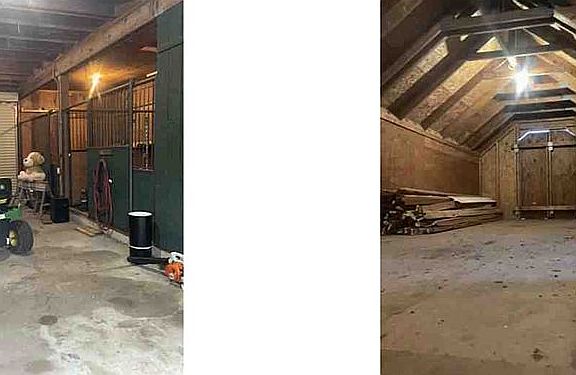A two-stall horse barn with loft completes the property, ideal for horses, equipment storage, or workshop use.