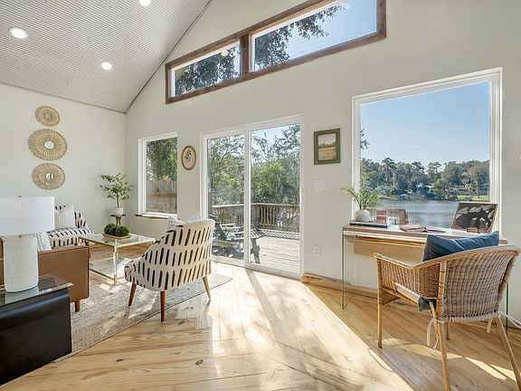FULLY RENOVATED NEW ROOF, HVAC, WATER HEATER, WINDOWS AND MUCH MORE! Welcome to this beautiful lake home overlooking Lake Talquin. Filled with character and artistic woodwork, this 3-bedroom, 2-bath home offers warmth, charm, and stunning water views. The spacious living room features tall ceilings, large windows, and a wood-burning fireplace that make it feel like a true retreat. Enjoy mornings on the oversized back deck and evenings under the stars by the fire pit. A dock can easily be built using parts of the existing one, making lake days effortless. Inside, you’ll find a separate dining area, laundry room, and a unique loft space accessed by a ladder perfect for a meditation/prayer nook, game room, or cozy reading spot overlooking the lake. Complete with a carport and oversized shed. Just a short drive to Tallahassee amenities this home offers peace, beauty, and a priceless sense of calm. All measurements are approximate, buyer to verify.