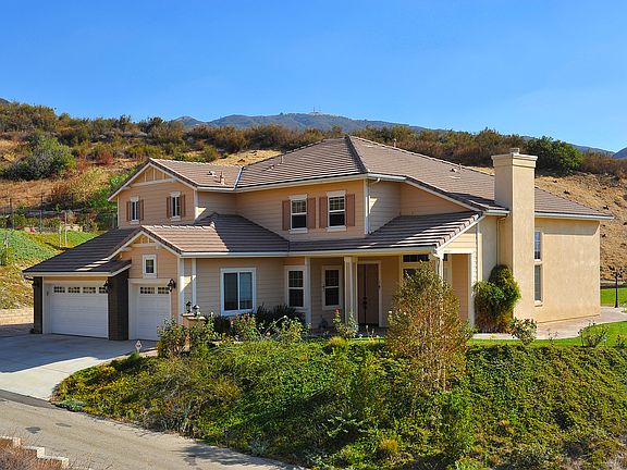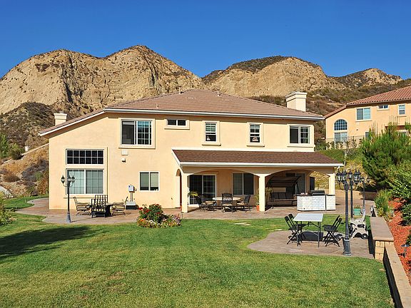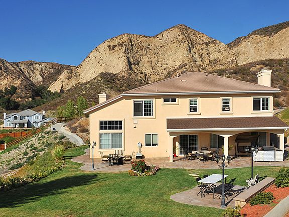 Stunning Executive custom crafted home on over 2 acres elevated on cul- de- sac w/ breathtaking mountain views. Double door entry ushers you into vaulted ceiling formal living leading to arched entry formal dining. Gourmet kitchen w/ stainless steel appliances and island counter w/ additional sink,granite counters and breakfast area open to family room-.Double pane windows w/ custom blinds, Ceramic Italian Tile floors. One bdrm on ground floor w/ attached bath. Loft on upper level may be used as study/media/game area. Master Suite with large bath with vanity n walk-in closet. Decorative ceiling fans with lights in all rooms. Entertainer's back yard w covered patio,island BBQ,and stamped concrete ground. Softener System,Instant Hot Water w Timer,wired for 240 Volt car charger,outside lights supported by 2 800 Watt Low Voltage Transformers, RV parking, MicroSeptec electronic septic tank w 3 chambers,ample room to build a pool in back. Award winning schools, Placerita Canyon National Park nearby,attractions of nature like lakes, biking trails, hiking and riding paths, golf courses and open parkland for picnicking,stargazing.Disney's Golden Oak Ranch, Placerita Canyon just a minutes away.