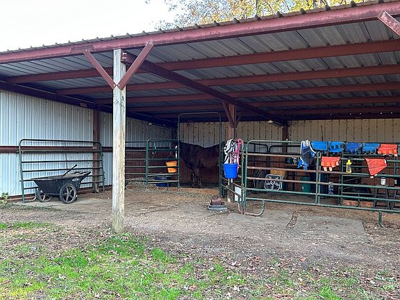 HORSES! WATER ! PEACEFULNESS ! BEAUTY ! Garden spot ! Open pasture with oak ,pecan trees. New windows and new hvac and windows(2019), new flooring (2023) 60 x 30 pole barn , 80 foot round pen for working horses , completely fenced. Shares a 4 acre LAKE! 28 miles of horse/walking trails through USA Corps Land,