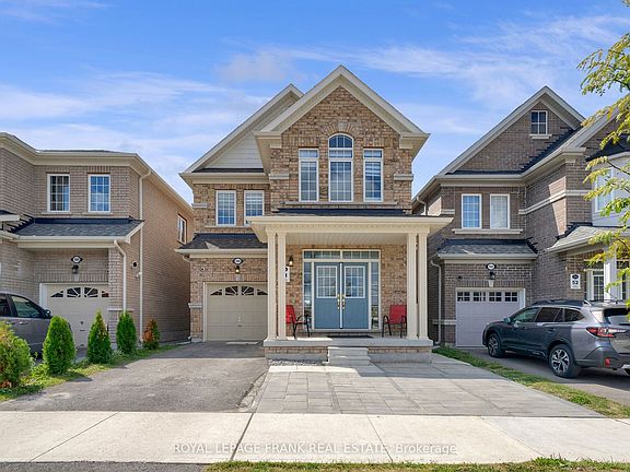 Welcome to 1884 Fosterbrook Street in Oshawa's sought after Fields of Harmony. This impressive two storey Hillside Elevation B was purchased as one of the largest floor plans and offers over 2,300 square feet of upgraded living with a mainly brick exterior for timeless curb appeal. The fully finished walkout basement was completed with permits and adds two bedrooms, a full bath, a wet bar, and enlarged egress windows that are perfect for extended family or guests. It also includes a dedicated second laundry room with hookups. The main floor features an open concept design anchored by Preverco 5/8" red oak hardwood Komodo through the great room and family and dining areas, complemented by a custom 50" linear electric fireplace with a 75" mantel shelf. The kitchen showcases Moonlight granite counters with an under-mount sink and an upgraded faucet, Siena oak cabinetry in a warm medium brown finish, a waterline to the fridge, a stainless hood fan, and a valance lighting rough in with junction. A builder added interior garage access door provides everyday convenience. Upstairs, every bathroom is finished with upgraded Moonlight granite counters over White Crystal vanities, while the oak staircase is stained to match with upgraded pickets. Builder installed hard wired security wiring is active, the front yard interlock enhances curb appeal, and additional touches include a TV outlet above the fireplace and an extra light box in the family and dining room. Original owners, pet free, never rented, and meticulously cared for, the home is approximately two years new with the balance of the Tarion New Home Warranty and a central vacuum rough in.Ideally located minutes to Highway 401 and Highway 407, schools, parks, shopping, and places of worship, with university and college about six minutes away, this home blends size, style, and function with a premium walkout lower level in one of Oshawa's most desirable new neighbourhoods.
