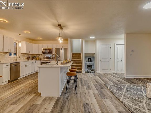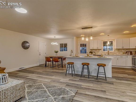 Welcome Home to this completely remodeled gem sitting on a sprawling 1-acre lot with breathtaking, panoramic views of the mountains and Pikes Peak. This stunning property offers the perfect blend of contemporary luxury, serene privacy, and unmatched natural beauty. The home has been thoughtfully updated, ensuring every detail is designed with style, comfort, and functionality in mind. Step inside to discover an open-concept floor plan that flows seamlessly from room to room, flooded with natural light through large brand new vinyl windows that capture the majestic mountain views. The spacious living room is a perfect gathering space, ideal for relaxing or entertaining. The fully remodeled kitchen is a chef's dream, featuring high-end stainless steel appliances, sleek quartz countertops, custom cabinetry, and a large island that features a prep sink that’s perfect for meal preparation or casual dining. The home boasts 4 generously-sized bedrooms, including a luxurious master suite with a private ensuite bath. Each bathroom is designed with modern finishes, offering spa-like amenities that create a peaceful retreat. Beyond the living spaces, the expansive 1-acre lot offers ample room for outdoor activities, gardening, or simply relaxing on the patio. The large lot also provides potential for additional customization, whether you're looking to add a pool, workshop, or simply enjoy the peaceful natural surroundings. Located in a desirable area of Colorado Springs, this home combines the best of both worlds: privacy and tranquility, yet close to all the conveniences the city has to offer. Don’t miss the chance to make this fully remodeled home your own. Experience luxury living in one of Colorado Springs’ most sought-after locations.