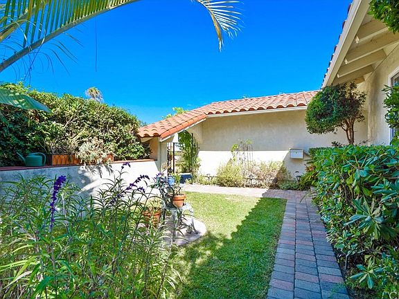 Welcome to the lovely Peninsula Verde neighborhood-a private enclave tucked away in the Eastview area of Rancho Palos Verdes! This beautiful home is warm and inviting from the moment you arrive! A charming archway leads to a lovely courtyard and the double door entry of your new home! The space is bright and open, with plenty of room for everyone to spread out! The living room features a stone fireplace, & opens to a spacious backyard. The kitchen is appointed w/granite counters, & stainless appliances and has a breakfast nook that is currently used and serves well as a home office. The dining room is large enough to host your holiday gatherings! There are 3 generous bedrooms including a comfortable master suite with sliders to the yard, 3 closets w/mirrored doors, & en-suite ¾ bath w/dual vanity. The backyard is the perfect place to relax, entertain or play, w/beautiful resort-like landscaping, stamped concrete & paver patio, & a large grassy area too! There's vinyl fencing along the perimeter and views of the beautiful blue sky and Palos Verdes Hills-even a peek-a-boo harbor view! Other features of this home include laminate flooring in living areas, smooth ceilings, crown molding, dual-pane windows/doors, plantation shutters, central heat/air, direct access to 2 car garage w/roll-up door, tile roof, & situated on a cul-de-sac street! This home offers easy access to stores, freeway and major arteries & best of all-the option to attend award winning Palos Verdes schools!