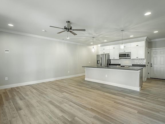 The main level features an open-concept design filled with natural light, seamlessly connecting the living area, dining space, and kitchen. Stainless steel appliances, ample cabinetry, and a central island create a highly functional kitchen for cooking and entertaining. Upstairs, the primary suite offers a private bath and walk-in closet, while two additional bedrooms and a full bath provide versatility for additional living space, guest use, or a home office. A half bath on the main level adds everyday convenience.