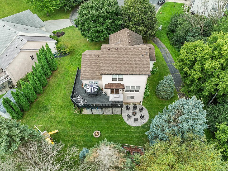 wrap-around deck, and 3 car garage. Completely finished walkout basement with a spacious entertainment room, wet bar, two large bedrooms, 3/4 bath, additional washer/dryer hookup in utility room, and a flex bonus room. On the main level, tall vaulted ceilings, a cozy gas fireplace, two dining areas and wrap-around deck to enjoy peaceful views of the large yard and paved patio below. Upstairs, 3 bedrooms, and 2 full baths including a generous primary suite, walk in closet and plenty of space to unwind.