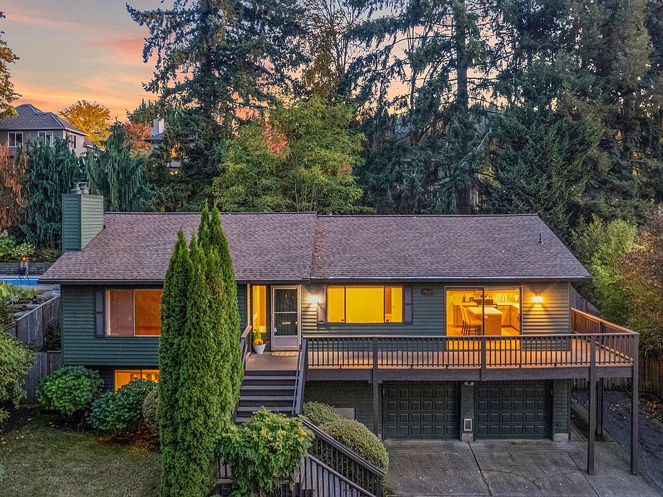 Beautifully open and bright, this daylight ranch sits on a generous ¼-acre lot, offering flexibility and comfort for all stages of life. The remodeled kitchen features a large island with solid-surface countertops—ideal for family gatherings and entertaining—and a slider that opens to a spacious deck with breathtaking sunset views.The vaulted living room with a gas fireplace flows seamlessly into the dining area, creating a welcoming space to connect and unwind. The private primary suite includes double closets, a walk-in shower, and French doors to a private deck—perfect for peaceful mornings or evening relaxation. Two additional bedrooms and a full bath complete the main level, providing plenty of room for family or guests.The lower level is designed with versatility in mind—an excellent setup for multi-generational living, guest quarters, or extended family. It offers a large family room with a private walkout entrance, a full bathroom with walk-in shower, and easy level access to the garage, providing both comfort and independence.Recent updates include a newer roof, HVAC, A/C, and water heater, ensuring this home is truly move-in ready. An oversized garage with storage and a workbench adds even more functionality.With its thoughtful layout, modern updates, and private outdoor spaces, this home is ideal for multi-generational living or anyone seeking room to grow together.