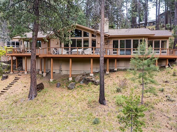 Riverfront property in Bend doesn't come up for sale very often. The Deschutes River is just a few steps away. With over 3 acres of highly sought after riverfront property in the private gated community of River Bluff Estates you can enjoy the river on your own terms. Views of the river are maximized from every room in the home. Cozy up next to the fireplace in the open great room or in the primary bedroom without losing the view of the river. A great home for entertaining with copper detailed countertops and an exclusive commissioned wood carved support post. Cooking is a dream with the large u-shaped kitchen island. Over $250,000 in recent renovations include, all new hardwood flooring, kitchen counter tops, a tiled shower, soaker tub, appliances, bonus room renovation and fencing.