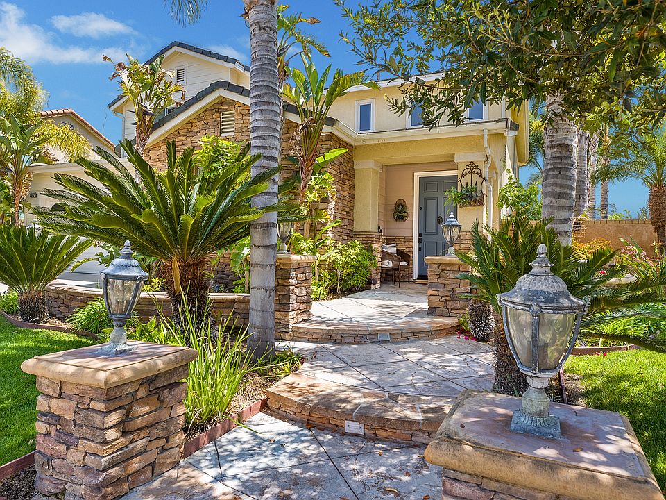Home appraised at value! Home won't last at this price!! VIEWS VIEWS VIEWS!!! Elevated prime location w/ spectacular unobstructed views, completely remodeled w/ no expenses spared, NO MELLO ROOS. Luxury abounds with a completely remodeled chef's kitchen that flows to the family room and Entertainer's Dream Back-Yard that take full advantage of the views and natural light in an open concept design. The generous use of natural materials, flagstone in the courtyard, granite, marble, smooth stucco and decorator bedroom painting in the interior is nothing short of sensational. 5 bedrooms 3.5 bathrooms of which one bedroom and full bath privately tucked away downstairs, 3 car epoxy garage w/ built-ins and TESLA charger, loft and office area. As you relax in your refreshing pool, enjoy the fire pit on cool evenings and BBQ all summer in your outdoor kitchen and bar, kids can play in the included play station as you relish the spectacular views. Over-sized Master Suite w/ retreat, walk-in closet with custom built-ins and beveled mirrored doors takes advantage of the views from every corner. Luxurious Spa-like Master Bath w/ stone counters, floors and shower, dual vanities and an open concept design. Spacious bedrooms with custom built-in closets and upgraded lighting. Ever efficient, this home comes with plantation shutters, automated blinds & A/C, zoned irrigation & solar outdoor lighting. Enjoy the tranquility of each sunrise and sunset from your own oasis on top of the world.