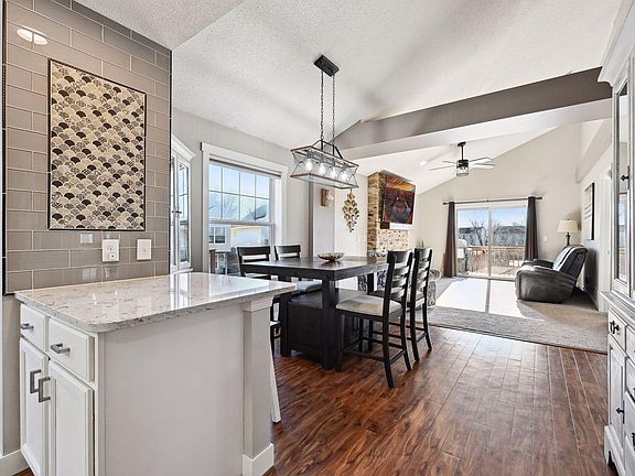 custom porcelain tile backsplash, designer lighting, and new hardware. Stunning stacked stone gas fireplace in upstairs living room with vaulted ceilings and sliding door out to the deck to enjoy private wetland views. The vaulted upper-level primary bedroom boasts a walk through en-suite with spacious closet and additional bedroom. Walkout lower level family room has all new recessed lighting with flat ceilings, a versatile bedroom or office space, an additional bedroom and completely remodeled bathroom. New exterior doors, interior doors, millwork, and carpeting were all installed. Garage floor has high end epoxy finish, built in cabinetry with backsplash and added attic access for extra storage space.
