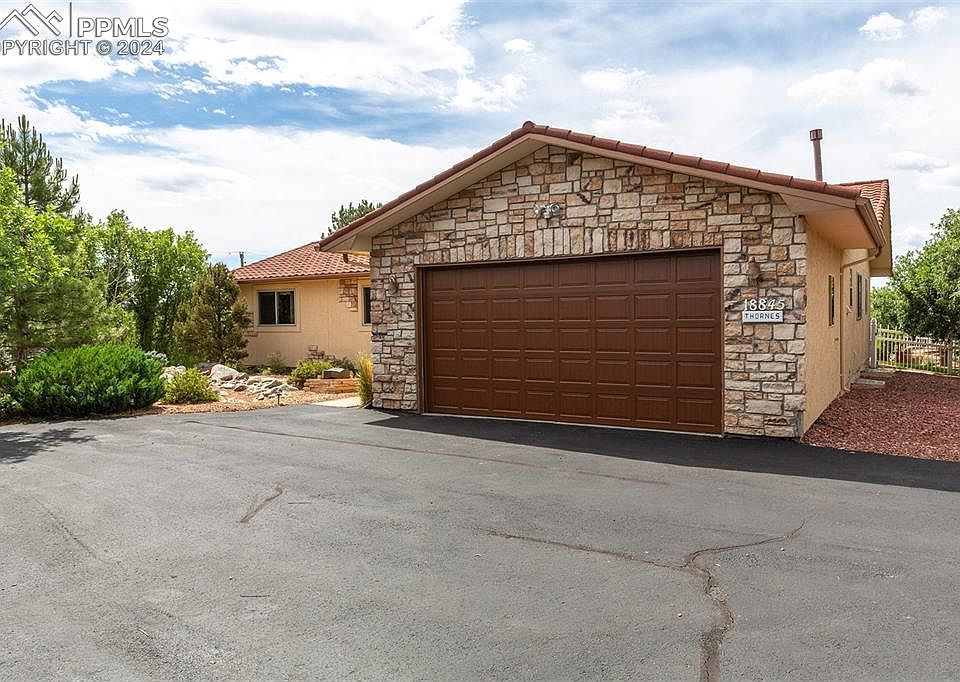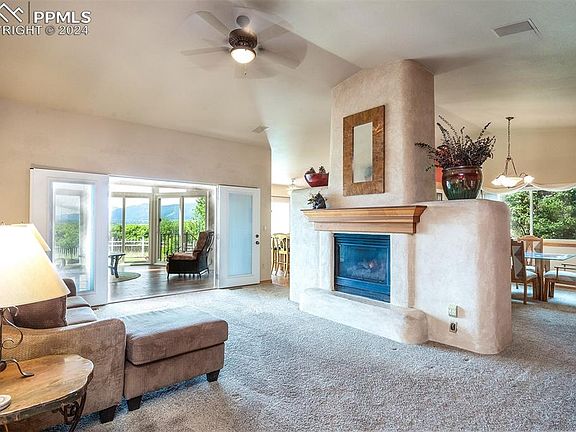 Nestled in the picturesque landscape of Monument, this home offers an exceptional retreat with breathtaking mountain views, lush trees, and a meticulously manicured landscape, spread across nearly 1 acre of land. This home boasts main level living including oak cabinets, solid surface granite countertops, main level laundry, surround sound speakers, central vacuum, central air conditioning and wood finishes. Walk into the spacious master suite complete with a jetted tub, walk-in closet, and walk out to private patio. Additionally, there is a home office/bedroom with wood flooring and one additional bedroom offering versatile living spaces to suit your needs. As you venture to the lower level, you'll find a cozy family room, an additional bedroom, full bath, wet bar, and game room with included pool table that provide endless entertainment options. The lower level has tongue and groove ceiling, adding to the home's rustic charm. A large custom sunroom invites you to enjoy the serene surroundings and fresh mountain air, privacy and views. The property also includes a storage shed, paved driveway, and a fenced backyard, perfect for enjoying outdoor activities. Minutes to downtown Monument and I-25 for your commute to Colorado Springs, Castle Rock or Denver. Don't miss this incredible opportunity to own a piece of Colorado paradise!