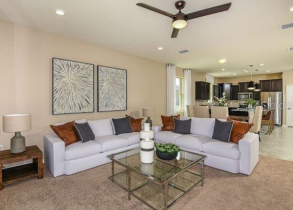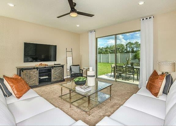 Enjoy plenty of privacy and space on your 75 ft. homesite. This former Canopy model home is a stunning 3-bedroom, plus den, 2-bath, 3-car garage home with elegant stone exterior finishes. This decorated model comes complete with stainless steel appliances including refrigerator, whole house blinds, designer light fixtures, and decorative interior walls at entry and den. The kitchen features a beautiful granite kitchen island and countertops with backsplash and maple stain color cabinets with crown molding. From the open kitchen and gathering room there are sliding glass doors which lead to the covered lanai and spacious backyard where you can sit back, relax, and enjoy the outdoors all year round. Ceiling fans are included in the light and bright great room and master bedroom. Owner's bath has two private granite vanities and ample closet space. This former model has quite a few upgrades you will enjoy not having to worry about buying, such as, washer and dryer, whole house gutters, epoxy garage floor coating and pendant lights above kitchen island. Talavera is located in Spring Hill, North of State Rd. 52. The community Features a resort-style pool with cabanas, multi-purpose recreation field, a playground, Tennis Court, and Basketball Court. Welcome home to the Canopy at Talavera! Pictures are for illustration purposes only, options may vary.